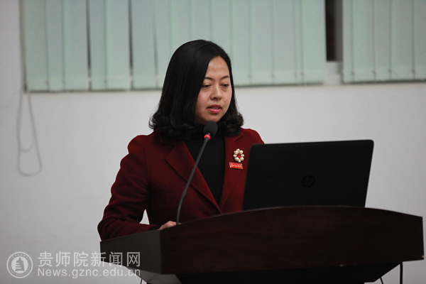 对外交流合作处处长兼华文教育基地办公室常务副主任张瑶在仪式现场,以图文并茂的形式从贵州华文教育基地成立过程、基地开展活动和成效、课程特色、课外活动安排、文化体验设计、下一步工作思路等七个方面,向嘉宾汇报贵州华文教育基地成立后所开展的华文教育工作情况。文学院卓婷老师代表华文教育基地教师谈了自己从事华文教育工作的体会。