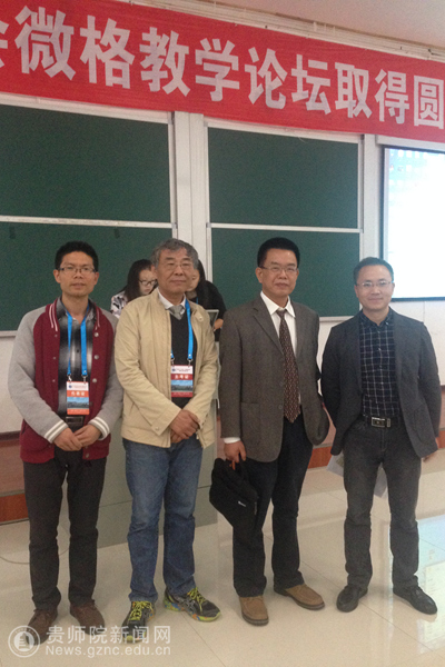 黎平辉、赵政与中国教育技术协会微格教学委员会主任孟宪凯、秘书长杨华合影