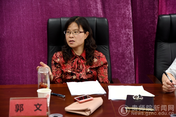 郭文听取了参会人员的汇报与讨论后,指出:一是站位要高,体现《规划》的前瞻性、指导性和操作性。二是关于《规划》,要从以下几个方面进行梳理:1.在充分总结“十二五”期间取得成绩的基础上认真分析“十三五”面临的机遇和挑战。2.要理清专业建设和发展的内涵,结合贵州省经济社会发展,做好专业设置与结构调整。3.人才培养方案是人才培养质量的最根本的保障,在“十三五”期间,要做好人才培养方案的完善与修订,构建应用型人才培养的实践体系。4. 课程建设方面,要增加总量,优化结构,培育特色,提高质量。5.要做好保障体系的建设,完善专业建设的评估机制,形成良性循环的保障体制与机制。
