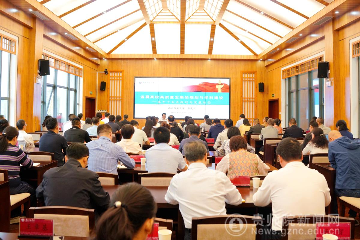 本网讯 为深入贯彻落实学校第三届党代会精神,科学谋划学校“十五五”发展蓝图,9月29日上午,学校在印山书院山骨讲堂隆重召开“十五五”规划研制工作专题讲座。山东师范大学党委常委、副校长、教育改革与发展专家张茂聪教授应邀作专题报告。全体校领导、各二级单位负责人、学科带头人、“十五五”规划专班成员等共同参加讲座。专题讲座由校党委常委、副校长潘运主持。