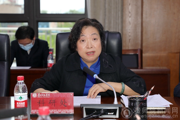 会上,科研处处长王平瑞介绍了学校“十三五”期间积极引导各学院、科研机构面向贵州经济社会发展的主战场,深入基础教育一线、深入乡村与企业,坚持把科研论文写在贵州大地上,在服务全省经济社会高质量发展上取得了一定成效。一是立足贵州大地,加强了平台与团队建设,做出科学研究论文;二是围绕我省产业发展需求,写好智力与技术支撑论文。三是加强政产学研用合作,写好校地校企合作论文。针对学校发展中面临的科技领军人才匮乏、校企共建平台较少等瓶颈,她讲到学校将从三个方面破解难题。一是加强产业导师队伍建设,着力提高成果转移转化能力。二是加强校企协同创新平台建设,积极探索合作共建新模式。三是强化社会服务意识,改进和完善人才激励体制机制。