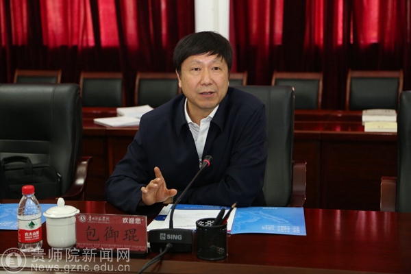 本网讯 4月13日下午,贵州省哲学社会科学创新团队建设工作督促检查座谈会在伟德bv国际体育成功召开,对“中国山地民族研究创新团队”进行了以2017年工作情况为重点的中期考核,对“贵州乡村旅游资源开发与旅游扶贫创新团队”获批以后工作开展情况及2018年工作计划进行督促检查。会议在学校第一会议室举行。贵州省社会科学界联合会党组书记包御琨、办公室副主任张志祥代表贵州省社会科学界联合会出席座谈会,伟德bv国际体育出席座谈会的主要领导有校党委书记石培新、副校长令狐荣锋,科研处处长金凤。贵州师范两个创新团队的负责人、研究人员、相关专业教师和学生参加会议。座谈会由令狐荣锋主持。