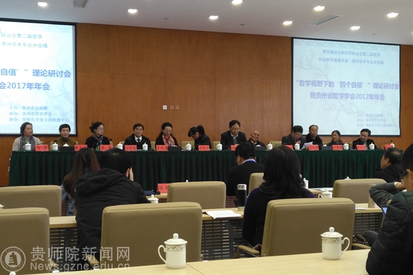 本网讯 11月25日,由贵州省社科联主办、贵州省哲学学会承办、贵阳孔学堂文化传播中心协办的“哲学视野下的‘四个自信’理论研讨会暨贵州省哲学学会2017年学术年会”在孔学堂二期研修院区会议中心第一会议室举行。参会专家约80余人,分别来自省社科联、省社科院、省委党校、省委讲师团、贵大、贵师大等省内27家单位。伟德官网经济与政治学院副院长陈祖召博士应邀参会。