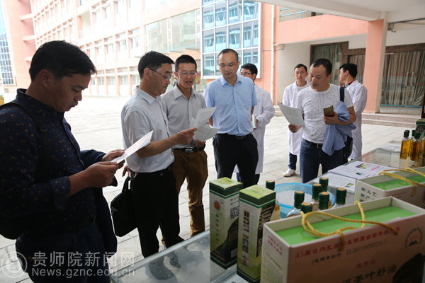 杨育斌听取了茶籽油科研基地负责人姜金仲教授对茶籽油的取材来源、生产过程、生产用处的介绍,重点对茶籽油的产量、茶叶的选用和收集、茶叶渣的使用方面进行了详细的了解。杨育斌表示,实现优势互补,共同发展进步是双方一致的追求,平塘县与贵师院的合作着眼于长期效益,茶籽油校地合作项目有良好的发展未来和社会前景。在谈到茶籽油的研究过程时,姜金仲表示这是“十年磨一剑”的成果,看似简单的生产中却凝聚了自己近十年的心血,杨育斌对此表示十分赞同,正如平塘“天眼望远镜”从预研到建成共历时22年,每一个进步都来之不易。