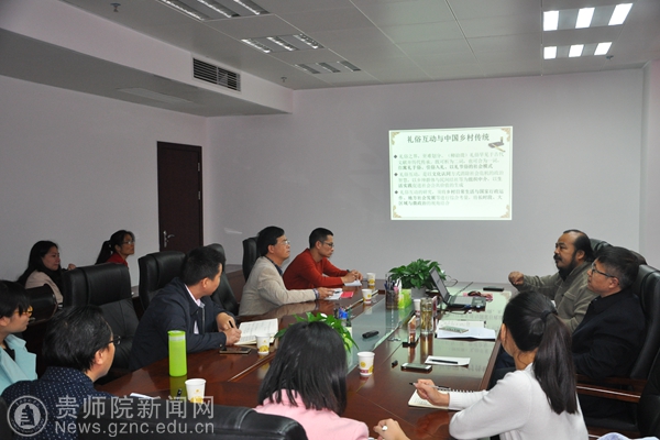 本网讯 受贵州旅游研究院邀请,11月21日山东大学中国乡土社会研究中心主任、博士生导师张士闪教授做客贵州旅游研究院第九届山地旅游学术研讨会,在伟德官网信息楼802会议室作了题为《礼俗互动与中国乡村传统》的学术报告。本次研讨会由贵州民族学与人类学高等研究院承办,校长助理徐凤增主持了研讨会。贵州民族学与人类学高等研究院、地理与旅游学院、传媒与设计学院以及历史与社会学院等单位部分师生参加了学术报告会。