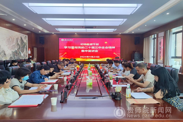 本网讯 为全面深入学习领会党的二十届三中全会精神,在学校纪检系统掀起学习宣传党的二十届三中全会精神的高潮,9月24日,校党委委员、纪委书记、省监委驻校监察专员韩兵兵同志为全校纪检干部宣讲党的二十届三中全会精神。