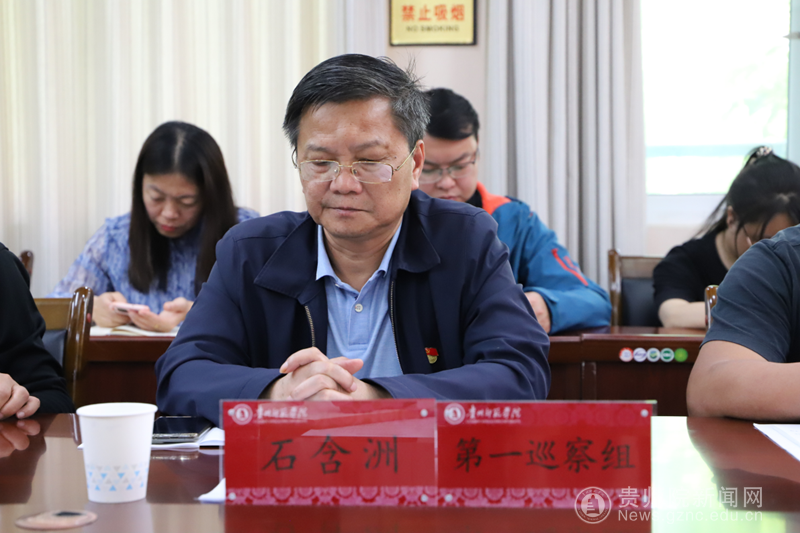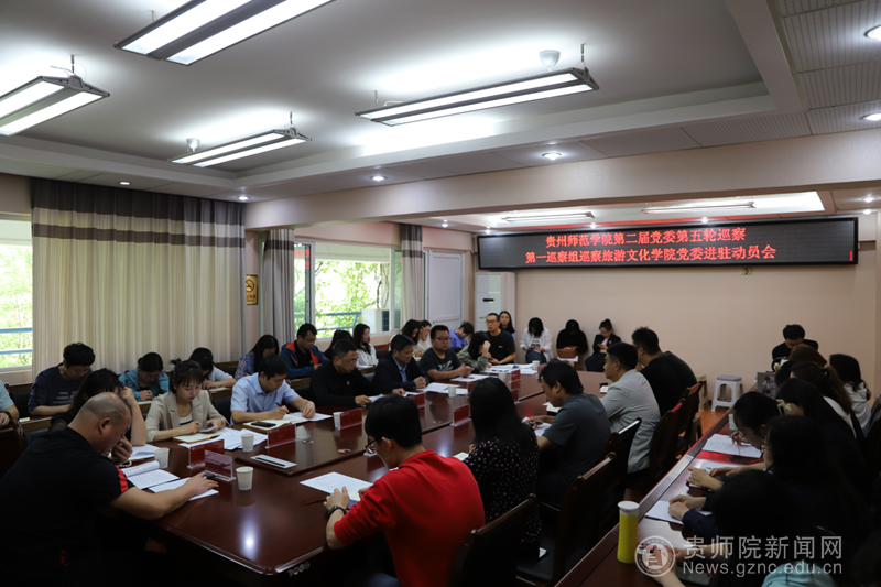 校纪检监察机构综合室主任、校巡察办副主任张金富,巡察办全体工作人员,第一巡察组全体人员,旅游文化学院党委书记冯建国、院长李乐京、副院长韦欣仪,全院教职工参加会议。
