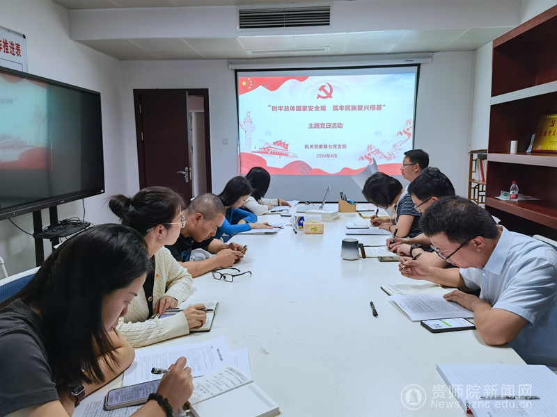 本网讯 为深入学习贯彻落实习近平总书记关于全面加强国家安全教育的重要指示精神,切实提高支部党员对维护国家安全和社会稳定重大意义的认识,营造维护国家安全的浓厚氛围,4月15日下午,机关党委第七党支部在信息楼1102会议室开展4月份主题党日活动。校党委委员、副校长潘运以普通党员身份出席,党支部全体党员参加。活动由党支部书记任翠娟同志主持。
