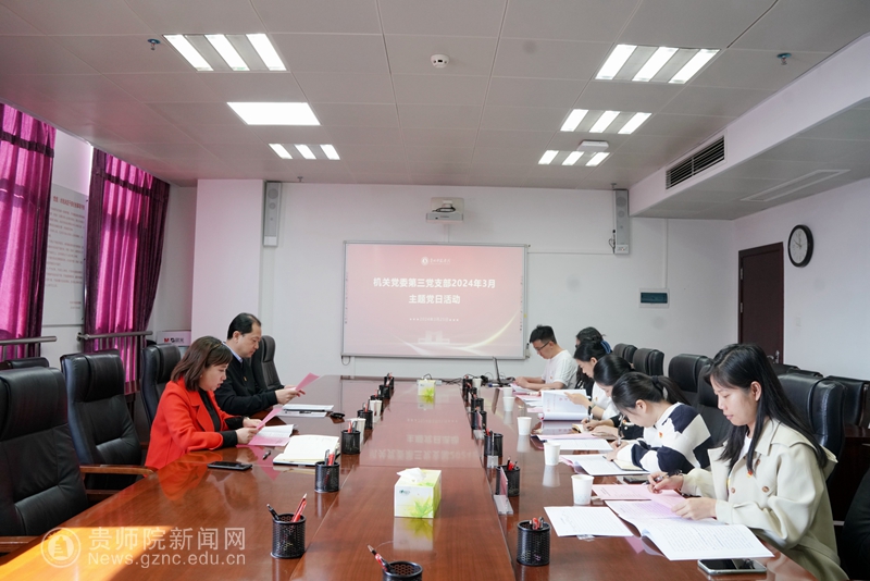 本网讯 为深入学习贯彻全国两会精神,统一思想认识,凝聚奋进力量,3月25日,机关党委第三支部在信息楼1011会议室开展“凝心聚力创伟业 真抓实干谱新篇”主题党日活动。校党委书记石培新同志以普通党员身份出席会议,机关党委第三支部党员参加会议,会议由党支部副书记周煜同志主持。