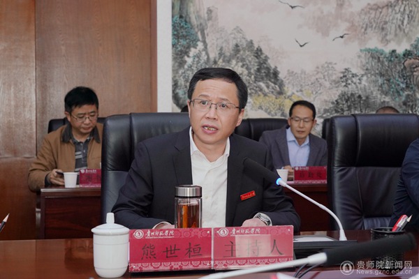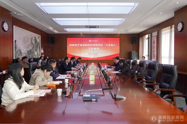 本网讯 11月21日,省教育厅“三全育人”第四督导组来校督导学校“三全育人”综合改革建设工作,本次现场督导采取听取汇报、查阅资料、师生访谈和实地走访等形式进行。上午9时,汇报会在信息楼二楼会议室举行,督导组组长、贵州工业职业技术学院党委书记蔡志坚,督导组组员、贵州大学宣传部部长杨楠,贵州经贸职业技术学院宣传部长支易,校党委书记石培新,校党委副书记熊世桓出席会议,相关部门、学院主要负责人参加会议。会议由熊世桓主持。