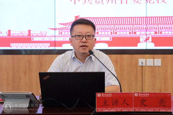 本网讯 为高质量做好伟德官网新时代党的创新理论“理论宣传二人讲”工作,有效推动党的创新理论学习入脑入心、宣传出新出彩、宣讲用心用情、落实见行见效,2023年10月16日下午,学校特邀中共贵州省委党校学员工作部副主任史亮于印山书院二楼山骨讲堂开展新时代党的创新理论“理论宣传二人讲”宣讲工作专题培训。此次培训由校党委宣传部副部长周煜主持。