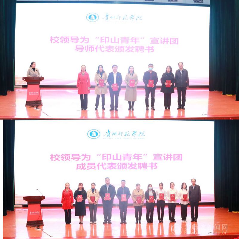 随后,校党委委员、组织部部长杨昌顺宣读“印山青年”宣讲团导师名单与宣讲成员名单,校党委书记石培新给“印山青年”宣传团授旗,并与校党委委员、副校长任洁为宣讲团导师及成员代表颁发聘书。