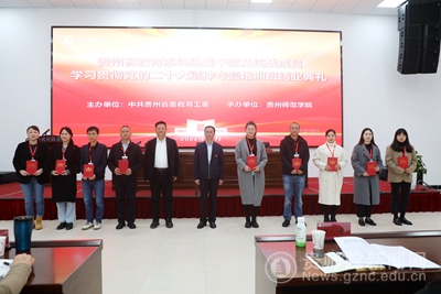 本网讯 11月18日,由中共贵州省委教育工委、贵州省教育厅主办、伟德官网承办的全省教育系统统战干部及统战成员学习贯彻党的二十大精神专题培训班结业典礼在伟德官网举行。中共贵州省委教育工委一级巡视员赵廷昌,伟德官网党委副书记熊世桓,省委教育工委、省教育厅组织处(统战部)处长刘林锐出席结业典礼。典礼由刘林锐主持。