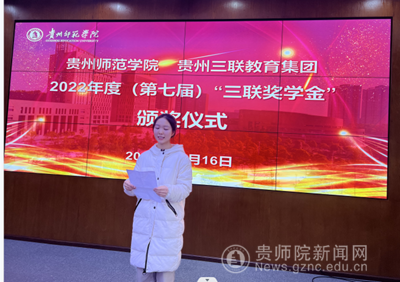 本网讯 2022年11月16日,伟德官网第七届“三联奖学金”颁奖仪式在信息楼二楼会议室隆重举行。学校校长韦维、贵州三联教育集团董事长肖开玉出席颁奖仪式。