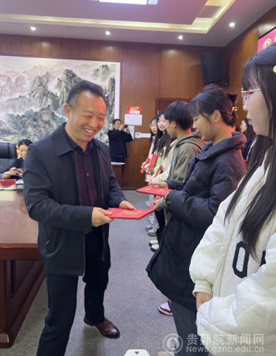 颁奖仪式上,随着音乐响起,获奖学生用一首《感恩的心》拉开了序幕。韦维、肖开玉向获奖者颁发了获奖证书。