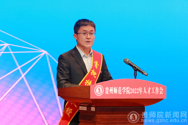 贾传义博士代表特聘教授集体发言时说:在贵师院的近8年时光中,我不仅是学校快速发展与进步的见证者人,更是学校重视人才关心人才的亲历者。学校多种人才奖励机制举措,让我们切身感受到了学校对“引才”、“育才”和“留才”的重视,也极大的提升了我们的荣誉感、获得感和归属感。相信在这些人才政策的指引下,学校一定会取得更快速和更高质量的发展。