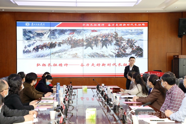 会上,马克思主义学院教师刘佳富进行了《弘扬长征精神——奋力走好新时代长征路》的示范思政课讲授。
