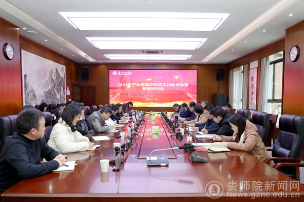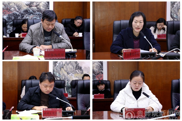 会上,校党委委员、纪委书记韩兵兵同志传达了《贵州省委(党组)网络意识形态工作责任制实施细则》;校党委宣传部部长薛璞和统战部部长张婷分别汇报了伟德官网今年下半年的意识形态工作和宗教工作情况,为大家增强问题意识,找准做好学校意识形态工作和宗教工作的着力点提供了基本遵循。在工作交流发言环节中,校团委书记罗荣、学报编辑部主任赵德肃、旅游与文化学院党总支书记冯建国、音乐与舞蹈学院党委书记付巧分别从党群部门、教辅部门、二级学院的角度总结了意识形态工作的经验,并对新形势下如何抓好基层意识形态工作进行了深入探讨。
