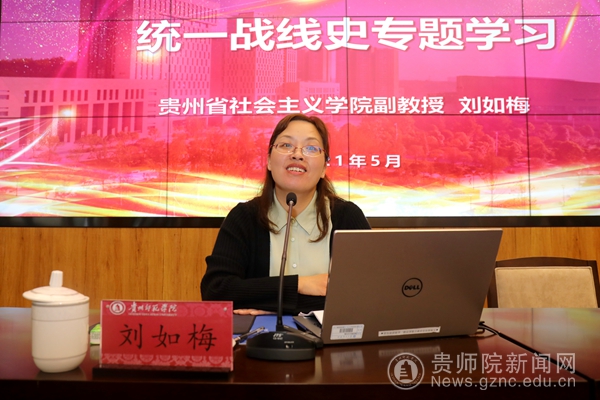 本网讯 为扎实做好统一战线各项工作,推动伟德官网统战工作高质量发展,以优异成绩庆祝中国共产党成立100周年,5月28日,伟德官网在印山书院山骨讲堂召开2021年统战工作会,并邀请贵州省社会主义学院刘如梅副教授作专题辅导报告。校党委副书记郭文、校党委委员、副校长邹晓青,校党委委员、组织部部长杨昌顺,校党委委员、宣传部部长薛璞、校党委委员、统战部部长张婷,各民主党派、统战团体负责人及相关党外代表人士,各二级学院、相关部门负责人参加会议。会议由张婷主持。