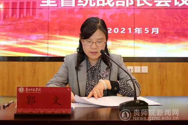 会上,郭文传达全省统战部长会议精神。张婷介绍了伟德官网统战工作的基本情况,并结合主要目标、工作措施对2021年统战工作进行了安排部署。