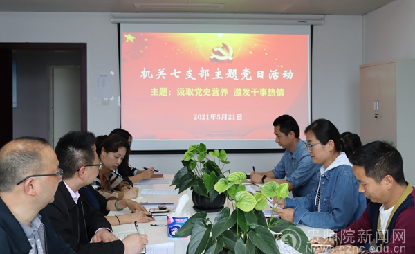 本网讯 5月21日,机关党委第七党支部在信息楼1102会议室,组织支部全体党员开展“汲取党史营养 激发干事热情”主题党日活动,本次活动由党支部书记任翠娟同志主持。校党委副书记郭文同志以普通党员身份参加。