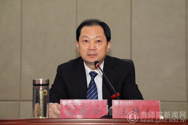 征途漫漫,惟有奋斗。石培新要求全校上下要把握好“时”与“势”,自觉把学校的发展融入到国家和贵州的发展中,进一步坚定“闯新路”的方向感,提升“抢新机”的紧迫感,增强“开新局”的使命感,激发“出新绩”的责任感,发扬为民服务孺子牛、创新发展拓荒牛、艰苦奋斗老黄牛的“三牛”精神,同心同德、奋力拼搏,以钉钉子精神紧扣学校中心工作和重点任务,做实做细做好各项工作,心往一处想,劲往一处使,破解发展难题,凝聚跨越发展磅礴力量,不断开创学校事业高质量发展的新局面,为助力贵州省“十四五”期间高质量发展、奋力开创百姓富、生态美的多彩贵州新未来贡献高校力量,以优异的成绩向建党100周年献礼!