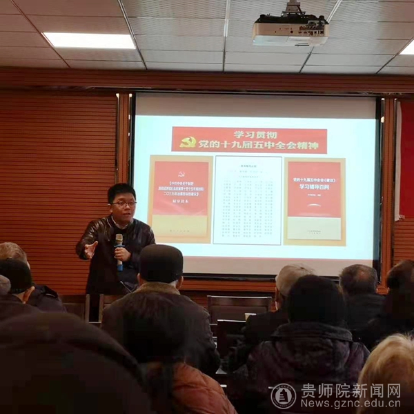 本网讯 12月23日上午,离退休党委邀请贵州民族教育研究院蔡知远博士为伟德官网离退休老同志作党的十九届五中全会精神专题辅导报告,报告会由离退休党委书记芦军主持。