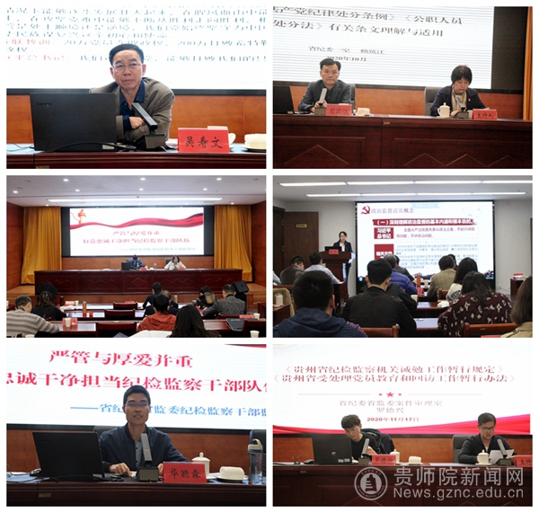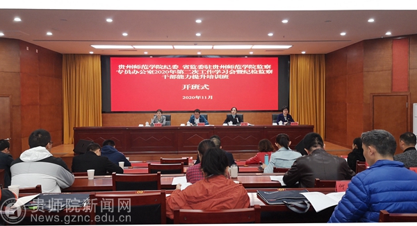 本网讯 11月15日至17日,正值全国上下掀起学习宣传贯彻党的十九届五中全会精神热潮之际,伟德官网在贵州省纪检监察干部学院举办了2020年纪检监察干部第二次工作学习会暨能力提升培训班。校党委委员、纪委书记、省监委驻校监察专员韩兵兵出席。省纪委省监委派驻第十一纪检监察组组长吴寿文亲自到堂作专题辅导讲座。