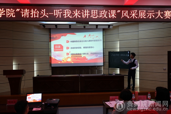 学工部部长刘红玲宣读比赛规则和评分细则。比赛开始后,各团队授课精彩纷呈,形式多样,他们以课程知识点为基,引经据典、谈我国抗击新冠疫情的先进人物事迹,举决战小康的典型案例,积极探索新的教学模式,大胆尝试新的教学方法,他们在PPT讲授、课堂互动中创新性的融入新闻播报、正反辩论小组等模式,呈现出了一场场比较精彩的教学课堂,赢来场下掌声不断。比赛持续了5个多小时,现场气氛活跃热烈。各团队对不同选题多维度、多层面的讲授,展示了伟德官网大学生的理论知识,展示了他们的教学技能,展示了他们的多彩课堂,展示了他们飞扬的青春。他们把“纸上谈”变“实践行”,让思政课有时代性也有感召力,让思政课有“知”也有“味”。