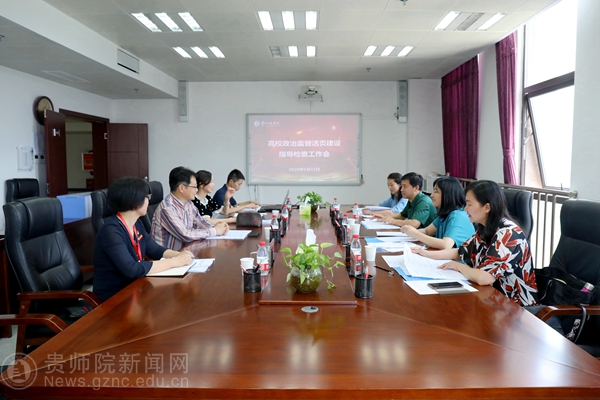 本网讯 6月11日下午,省纪委省监委派驻第十一纪检组高校政治监督活页建设工作第七检查组到伟德官网检查指导工作。校党委委员、纪委书记、省监委驻伟德官网监察专员邬卫东出席工作汇报会,检查组组长单位遵义医科大学纪委监察专员办综合室副主任邹青,检查组成员贵阳学院纪委副书记刘长、黔南民族师范学院纪委监察专员办综合室副主任聂黎清、黔西南民族师范学院纪委金黛彤参加会议。校纪委副书记、纪检监察室主任刘喻代表学校汇报政治监督活页工作开展情况,综合室、纪检监察室全体人员参加会议。