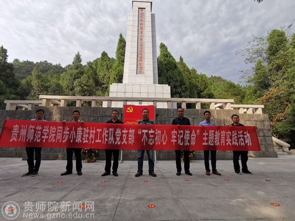 本网讯 在全校扎实开展“不忘初心、牢记使命”主题教育之际,9月25日下午,伟德官网奋战在脱贫攻坚一线的同步小康驻村工作队党支部7名党员,在队长熊德永、支部书记干正洋的带领下,到印江自治县木黄镇开展“守初心 担使命”革命传统教育,缅怀革命先烈,重温入党誓词,重问入党初心。
