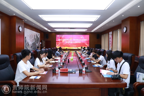 本网讯:6月26日上午,贵州广播电视大学(贵州职业技术学院)党委宣传部部长、统战部长于立群率部门全体成员,校学生记者团学生代表到伟德官网考察交流。伟德官网党委宣传部长邹晓青等接待了于立群一行并在信息楼二楼会议室举行了交流座谈会,会议由邹晓青主持。