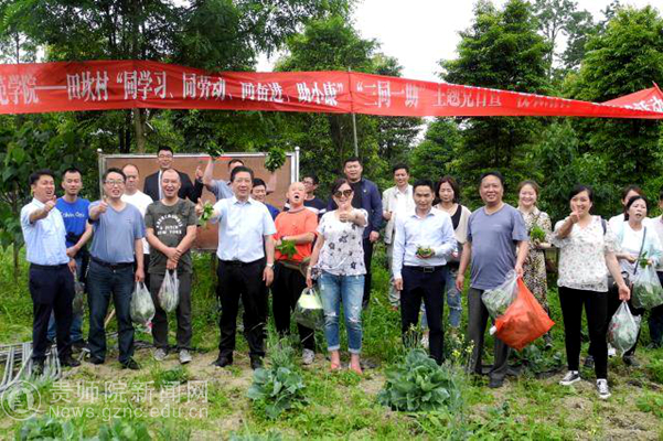 本网讯 5月24日,后勤处党支部全体党员,特邀余维祥副校长、后勤处非党员同志、三个食堂、校农结合超市负责人等24人到开阳县南龙乡田坎村开展“三同一助(同学习、同劳动、同奋进、助小康)”主题党日暨“校农结合”文明实践活动。