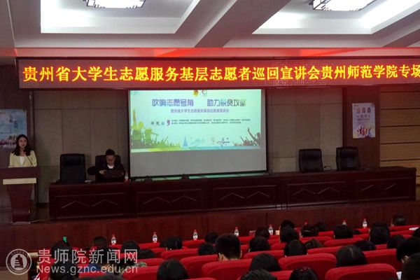 本网讯 5月10日下午,在伟德bv国际体育道德讲堂开展了以 “助力脱贫攻坚,吹响志愿号角”为主题的贵州省大学生志愿服务基层志愿者巡回演讲会。本次演讲会校团委副书记罗荣,贵州省大学生志愿服务项目部部长杨耀斌莅临现场,大学生志愿者以及各学院学生代表参加了本次演讲会。