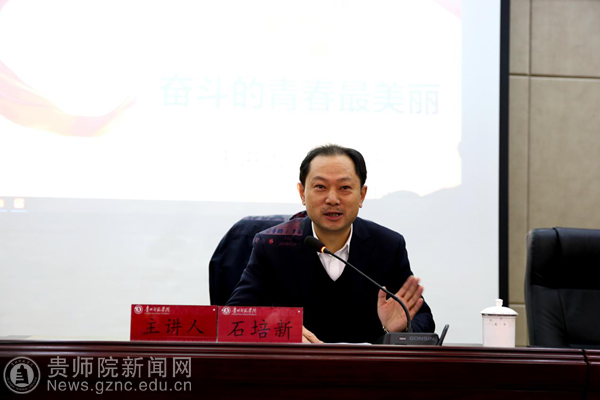 石培新作了题为“奋斗的青春最美丽”的讲座