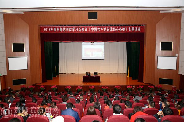 本网讯 根据《中共中央纪委关于认真学习贯彻<中国共产党纪律处分条例>的通知》精神,为学习宣传、贯彻落实好《条例》,10月25日,伟德官网特邀省委党校科学社会主义教研部副主任、教授郝建为伟德官网师生作解读新修订《中国共产党纪律处分条例》专题讲座。副校长令狐荣锋、校纪委书记王之瑞出席讲座,校纪委委员、副科级(含)以上党员干部、各基层党委纪检委员、各党支部书记、纪检委员、各学院教师党员代表、学生党员代表400余人参加讲座。讲座由王之瑞主持。