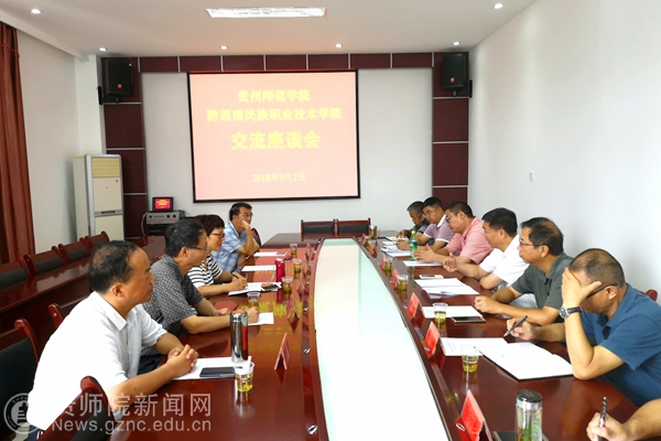 双方举行了座谈交流会。黔西南民族职业技术学院院长、党委副书记韦国民,党委副书记黄波等相关领导和同志出席了座谈交流会。会上,双方领导互相介绍了各自学校的发展历史、办学理念、人才培养以及招生就业等方面的基本情况。