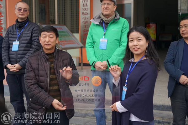 本网讯 经同步小康驻村工作队精心策划,设计学院副院长聂森牵线搭桥,中南民族大学少数民族审美文化研究中心、华黍文化艺术研究所所长刘凡教授、德国著名艺术家、教育家、柏林工程艺术大学Walter Bergmoser教授等5名专家2月28日赴印江土家族苗族自治县实验小学开展留守儿童艺术治疗活动。3月2日正值中国的传统节日——元宵节,在这样一个特别的日子,伟德bv国际体育设计学院、华黍文化艺术研究所Love on艺术基地在印江县实验小学挂牌,意味着伟德bv国际体育关注印江县留守儿童艺术治疗正式拉开帷幕,下一步将和印江县实验小学“结对”着眼于农村留守儿童的心灵呵护,不定期赴该校开展艺术治疗活动,为孩子的心灵营造避风港。学校还将联合华黍文化艺术研究所寻找资金资助印江县留守儿童到武汉参与更多艺术治疗和艺术体验项目,尽微薄之力帮助需要帮助的人,将大爱洒向少数民族贫困地区,关心、关注、关爱留守儿童的心理健康,净化他们的心灵,培养留守儿童的健全人格,让他们都成为祖国最美丽而又最灿烂的花朵。