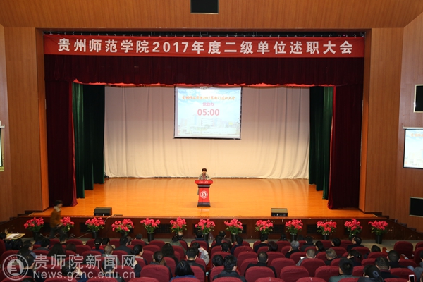 本网讯 1月3日伟德官网2017年度二级单位述职大会在逸夫楼演播厅举行,全体校领导出席会议,全体处级干部和教职工代表参加会议。会议由学校党委副书记令狐彩桃主持。