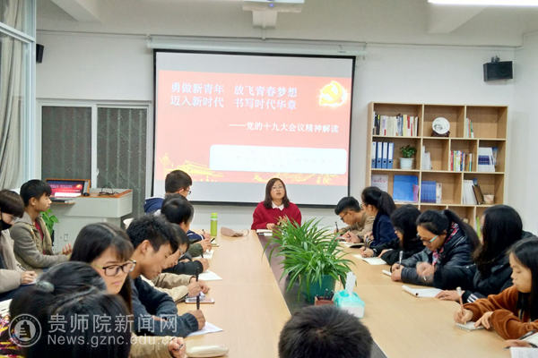 本网讯 为深入贯彻学习党的十九大精神,全面提高我院青年学子的思想政治觉悟,勇做新青年,放飞青春梦想,迈入新时代,书写时代华章。11月30日下午,伟德bv国际体育青年导师宣讲团成员吴光梅在兰园丽琼工作室开展关于党的十九大精神宣讲活动,材料科学与工程班30余人到场认真聆听了此次宣讲。宣讲会由化学与生命科学学院辅导员吴光梅主持。
