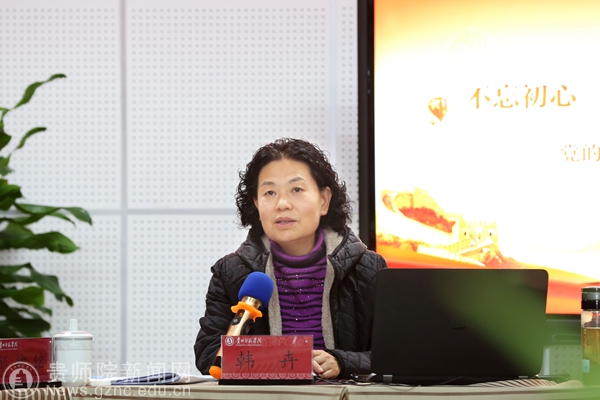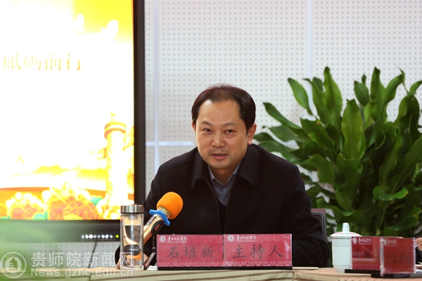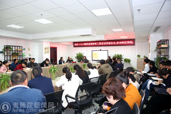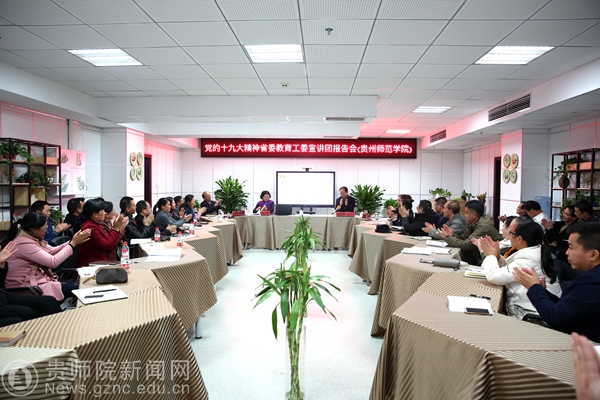 本网讯 11月29日下午,省委教育工委宣讲团成员、贵州师范大学党委书记韩卉到伟德官网作党的十九大精神宣讲报告。全体校领导、基层党委书记、学院院长、部门主要负责人参加会议。校党委书记石培新主持宣讲会。