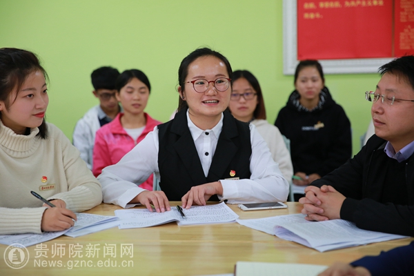 本网讯 10月26日下午,出席中国共产党第十九次全国代表大会的贵州代表返回贵阳。走出机场,党的十九大代表、团贵州省委书记涂妍直奔伟德bv国际体育的教室,参加2015级思政班团支部举办的“感恩·奋进——青春建功新时代”主题团日活动,把总书记的话和大会精神带给青年学生。
