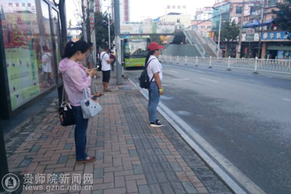 伟德官网青年志愿者协会志愿者在公交站维持秩序