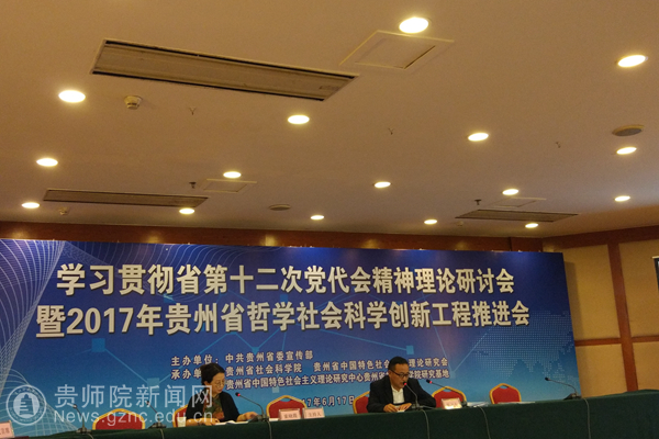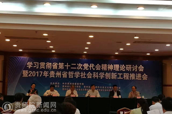 本网讯 6月17日,由贵州省委宣传部主办、贵州省社会科学院、贵州省中国特色社会主义理论研究会、贵州省中国特色社会主义理论体系研究中心省社科院研究基地承办的学习贯彻落实省第十二次党代会精神理论研讨会暨2017年贵州省哲学社会科学创新工程推进会在冠洲宾馆召开。伟德官网作为贵州省社会科学院战略合作单位,应邀由科研处处长金凤带队,地理与旅游学院书记吴亚平、教师罗光杰、白易,经济与政治学院教师胡江华等代表学校参加会议。会议分为开幕式、专家发言、主题报告三个阶段,分别由贵州省社会科学院副院长索晓霞研究员,贵州省社会科学院院长吴大华研究员主持。