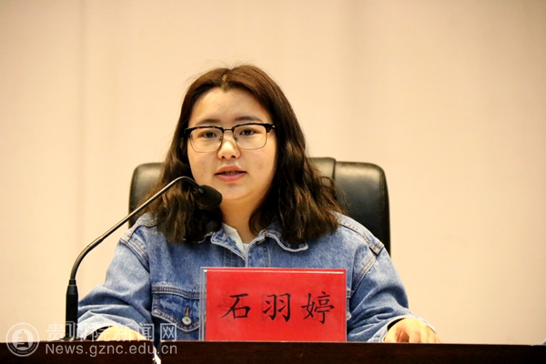 石羽婷同学在传达陈敏尔书记的讲话精神
