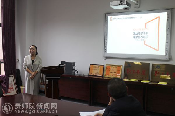 邹晓青从三个方面进行了宣讲。一是习近平总书记在贵州全票当选党的十九大代表。“带着对贫困地区群众的牵挂,习近平总书记在贵州参选,这是对贵州各级党组织的极大信任,是全省广大党员的巨大光荣,是对贵州各族人民的亲切关怀,是对贵州脱贫攻坚的巨大激励。”展现了党中央新的作风形象,树立了良好导向,对于进一步密切联系党员群众,加强和规范新形势下党内政治生活,推动实施脱贫攻坚等重大国家发展战略,具有重大意义。二是陈敏尔书记在党代会上作的《紧密团结在以习近平同志为核心的党中央周围,决胜脱贫攻坚,同步全面小康,奋力开创百姓富生态美的多彩贵州新未来》报告振奋人心,充分体现了报告姓“党”、姓“黔”、姓“民”、姓“实”。姓“党”,站在全党全国的高度,体现了核心意识,体现了党中央对贵州的亲切关怀,体现了省委对标看齐。姓“黔”,站在贵州的角度,围绕习近平总书记治国理政新理念新思想新战略特别是对贵州的要求,精准总结过去、精准分析形势、精准谋划未来,凸显了贵州特色。姓“民”,站在百姓的角度,把“决胜脱贫攻坚,同步全面小康”和“百姓富生态美”写入主标题,报告中处处体现人民利益、人民获得感。姓“实”,站在未来的角度,是一个唯实、务实、求实的报告,是上接天线、下接地气的朴实报告;三是她讲到要领会精神提升党性,牢记职责不忘初心。学校各级党组织和广大党员群众要坚定不移推进全面从严治党,要旗帜鲜明讲政治,严明政治纪律和政治规矩,着力营造风清气正的政治生态,不忘初心、继续前进,“撸起袖子加油干”,为学校事业的发展贡献应有力量。