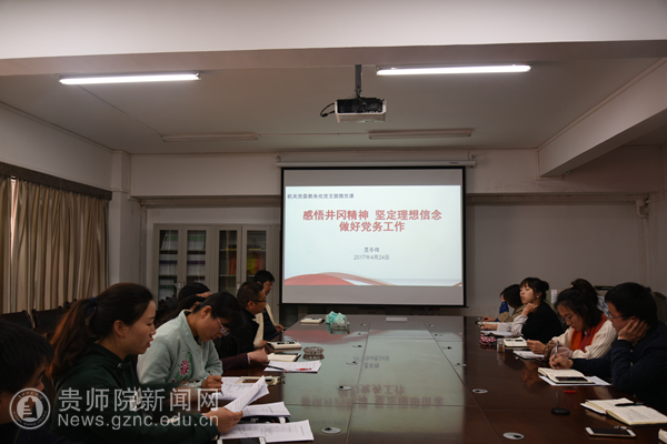 4月24日下午,机关党委教务处支部书记聂冬梅在教务处会议室为教务处全体工作人员上了一堂题为《感悟井冈山精神,坚定理想信念,做好党务工作》的微党课,并围绕如何做好党务工作开展了交流讨论。