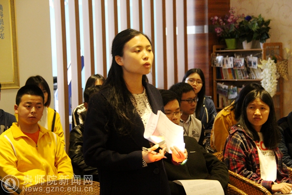 外国语学院的辅导员张静认为,作为高校辅导员,要做好学生的人生导师和知心朋友:一是领会精神,深化学习,坚定政治立场提高理论素养;二是立德树人,典型示范,做好社会主义核心价值观的传播者和践行者。地理与旅游学院的辅导员时小翠说她将在今后的工作中多鼓励学生参与创新活动,努力培养学生的创新能力,培养助力贵州“互联网+”的人才。