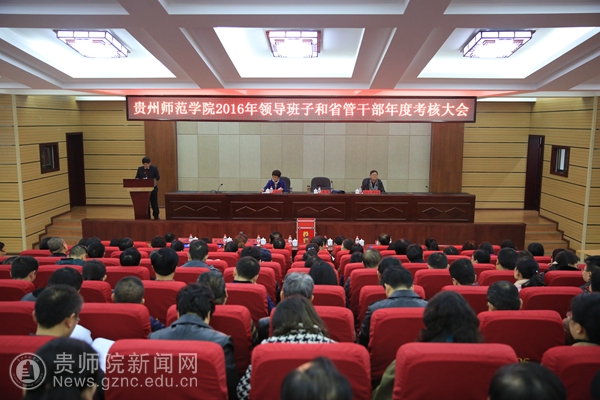 本网讯 1月6上午,伟德官网2016年领导班子和省管干部年度考核大会在文韬苑二楼道德讲堂召开,本次测评会是省委组织部对省管领导班子和领导干部进行年度考核的重要内容之一,旨在全面贯彻从严治党、从严管理干部的新要求,认真落实中央和省委关于加强干部考核工作的新精神。省委组织部考核组成员黄智珉到会指导,全体校领导、全体处级干部参会,校长李存雄主持会议。