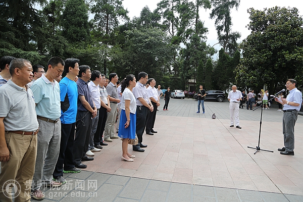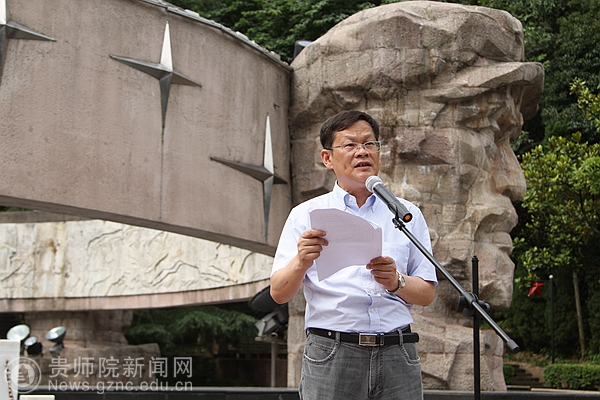 在遵义红军烈士陵园,在高大肃穆的红军烈士纪念碑前举行“三严三实”专题教育之革命传统教育活动,李存雄给校全体副处级以上干部上了一堂生动的党课。